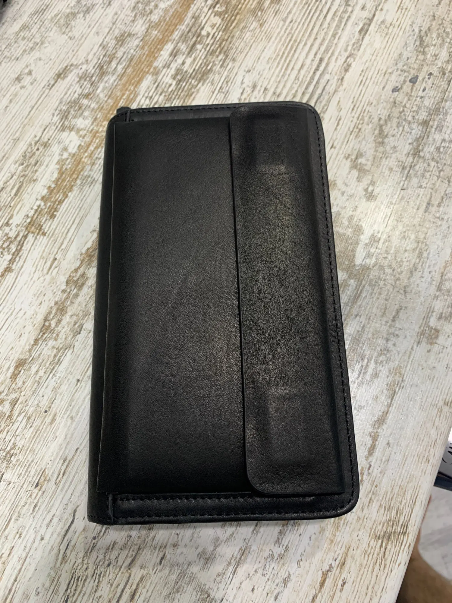 100% Кожаный, вмещаются и деньги и телефон и документы (все вместе). Понял, что очень не хватает ручки петли...