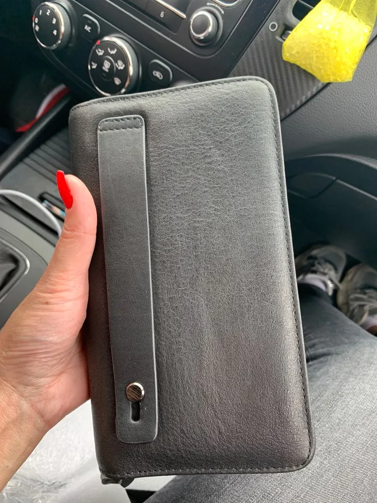 Все как в описании и на картинке, запашок небольшой имеется, но не сильный. Ключи от авто и пульт сигнализации хорошо легли в одну из секций клатча, документы и смартфон-в другую. По факту загрузки клатч несколько тяжеловат, но удобен. Спасибо продавцу за быструю доставку.