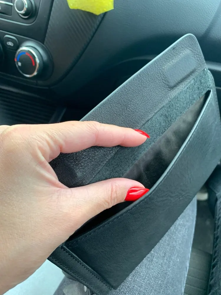 В общем всё как в описании. Жаль что сгодится только как большой кошелёк и то денег туда много не положишь. Про ключи от машины и от дома вообще можно не думать. Маловат. Паспорт права телефон влезли и на этом всё.