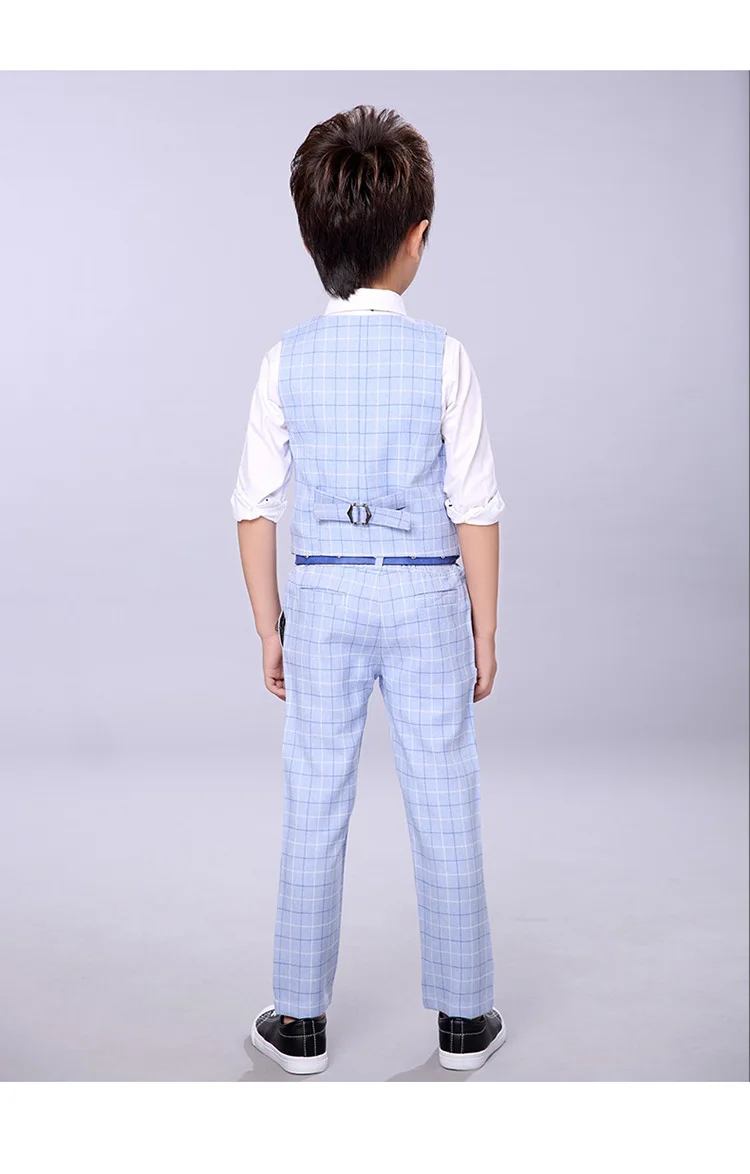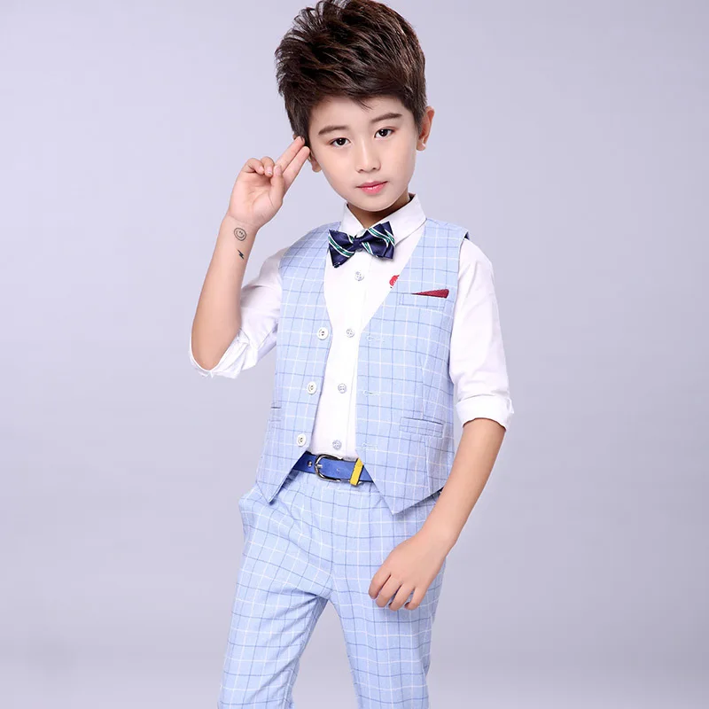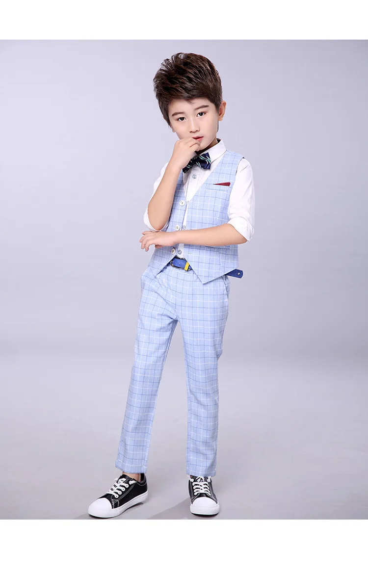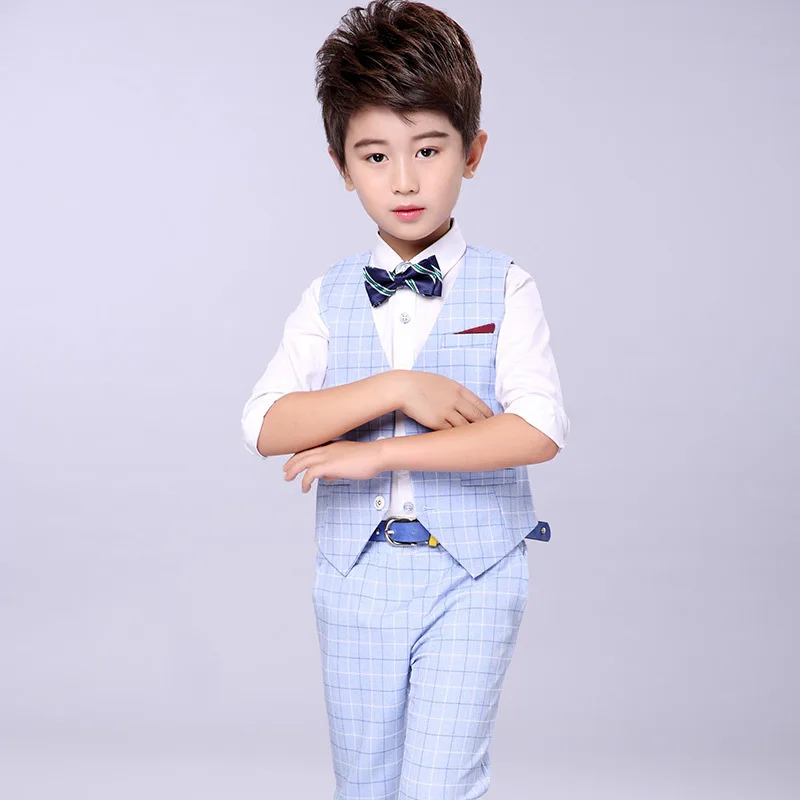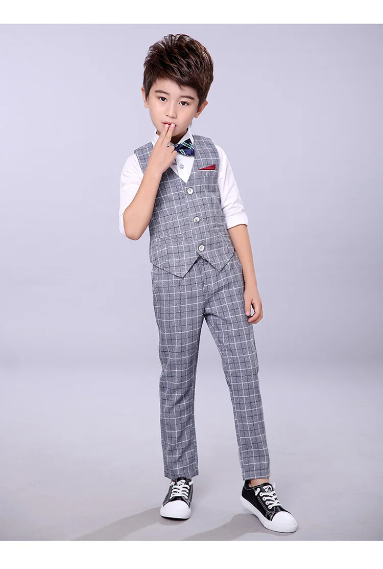 Осенний деловой костюм для мальчиков на свадьбу и выпускной, детский Классический Клетчатый жилет и брюки, комплект одежды из 2 предметов, детский смокинговый костюм для вечеринок