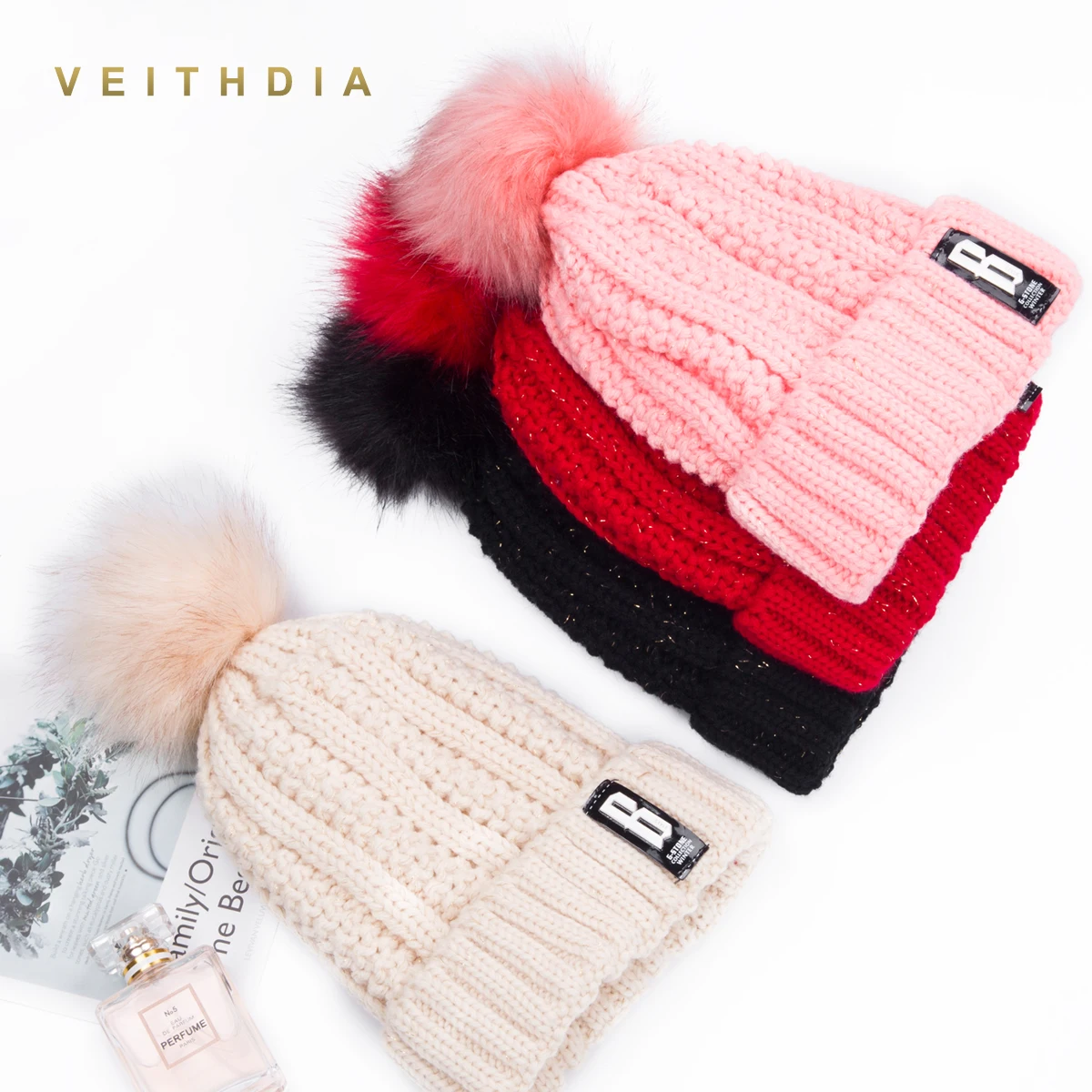 Новинка 2019, зимняя шапка VEITHDIA с помпонами для женщин, модные однотонные теплые шапки, вязаные облегающие шапки, брендовая плотная женская шапка, оптовая продажа