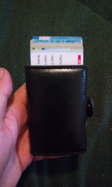 Кошелек очень красивый. С большой кнопкой вытягивание карты очень удобно и гораздо лучше, чем другие продукты в этом ценовом классе. Идеально подходит для людей с несколькими картами. Кошелек, который я могу только рекомендовать! Товар был доставлен в указанный срок около 20 дней :)
