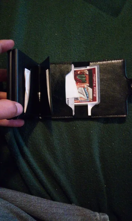Очень хорошее качество продукции и прибытие в течение 10 дней. Немного толще, что я думал, но определенно хорошо для всех 12 карт, которые у меня есть, и все еще есть запасное место, чтобы положить больше внутри. Я рекомендую его!