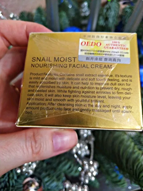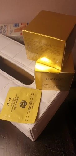 Крем с коллагеном и эссенцией улитки. Поскольку есть секреция улитки в составе, крем характерно тянется. Плотненький, я использую на ночь. Хорошо увлажняет и питает кожу, где-то после недели использования, на моей коже разглаживаются мелкие мимические морщинки. Кожа выглядит свежее. В данном случае я понимаю, что нашла именно свой крем. Крема с улиткой не рекомендуют использовать не переставая, я всегда делаю перерыв после очередной баночки, примерно месяц. Тогда не вызывает привыкания и эффект опять же на лицо. Доставка около трех недель почтой России. Упаковка фирменная коробочка и почтовая коробка. Состав и срок годности указан.