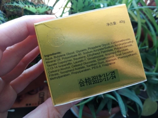 Доставка в Беларусь месяц. Трек частично отслеживается. Пришел вот в такой красивой золотой коробочке, запаян в слюду. Объем содержимого 40 г. Основные ингредиенты: муцин улитки, экстракт алоэ, коллаген. Срок годности 3 года. Сам крем находится вот в такой красивой белой пластиковой баночке. Продукт предназначен для питания, увлажнения и омоложения кожи, повышения упругости, замедления процессов старения. Использовать лучше утром и вечером на очищенную кожу лица. Кожа мгновенно насыщается влагой, прекрасный эффект увлажнения и питания. Так как аллергической реакции не вызвал, то буду пользоваться дальше. Расход минимальный, хватит баночки надолго. В качестве уходового средства мне очень нравится. К покупке рекомендую