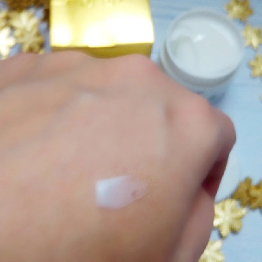 Пришла посылка быстро,отслеживалась на всем пути. Упаковка надёжная. Крем находится в пластиковой баночке и фирменной коробочке золотого цвета,запаянной в слюду. На коробочке присутствует вся необходимая информация о составе,сроке годности и способе применения на английском языке. По консистенции крем липкий,тянется,нежной текстуры,белого цвета,с приятным запахом. Впитывается хорошо,липкий слой не оставляет. Кожа после применения хорошо увлажненная,упругая,приятная на ощупь. Если пользоваться кремом на протяжении длительного времени ,сокращаются морщины и сужаются поры. Аллергических реакций у меня не вызвал. Крем очень понравился,к покупке рекомендую!!!