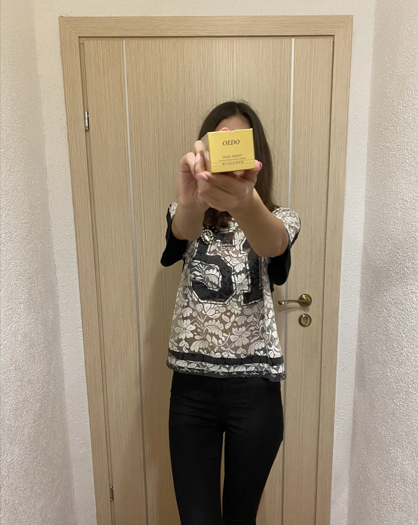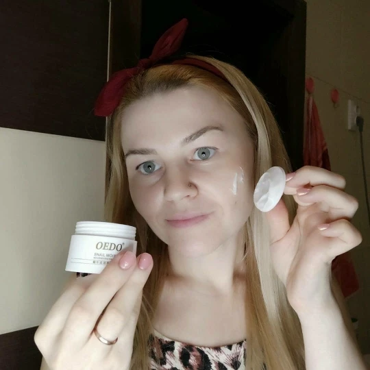 Сегодня хочу рассказать вам о креме который я заказываю далеко не первый раз. Это крем для лица от OEDO Snail moist. Все как и в прошлый раз! Коробочка была запаяна в слюду. Внутри баночка с кремом объемом 40 грамм. Аккуратная и красивая упаковка. Есть защитная мембрана под крышкой. У крема достаточно вязкая и тягучая консистенция. Но при этом он легко распределяется по коже тонким слоем и быстро впитывается. Обладает очень приятным сладковатым и нежным ароматом. Пользуюсь им один раз в сутки. Этого достаточно. Данный крем как раз подходит для категории 30+. Мне крем очень нравится по своим свойствам. Не вызвал неприятных ощущений либо аллергии за время использования. Крем отлично питает и увлажняет кожу, на ощупь после нанесения крема, она становится бархатной и гладкой. Запах не навязчивый и лёгкий. Крем быстро впитывается, не оставляет никакой жирной либо липкой маски на лице. Мне результат нравится, да и цена на него бюджетная!) Доставка 2 недели. Продукция была надёжно упакована