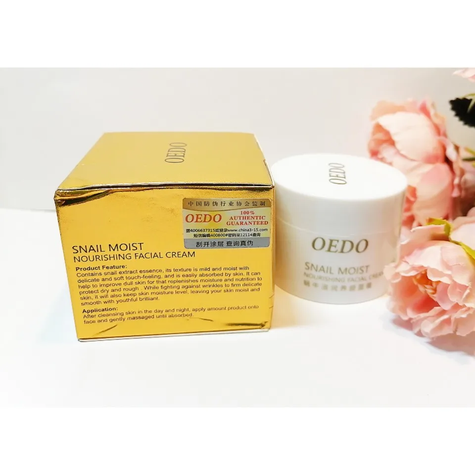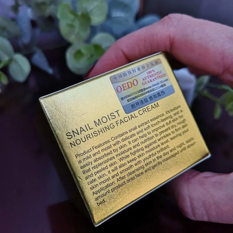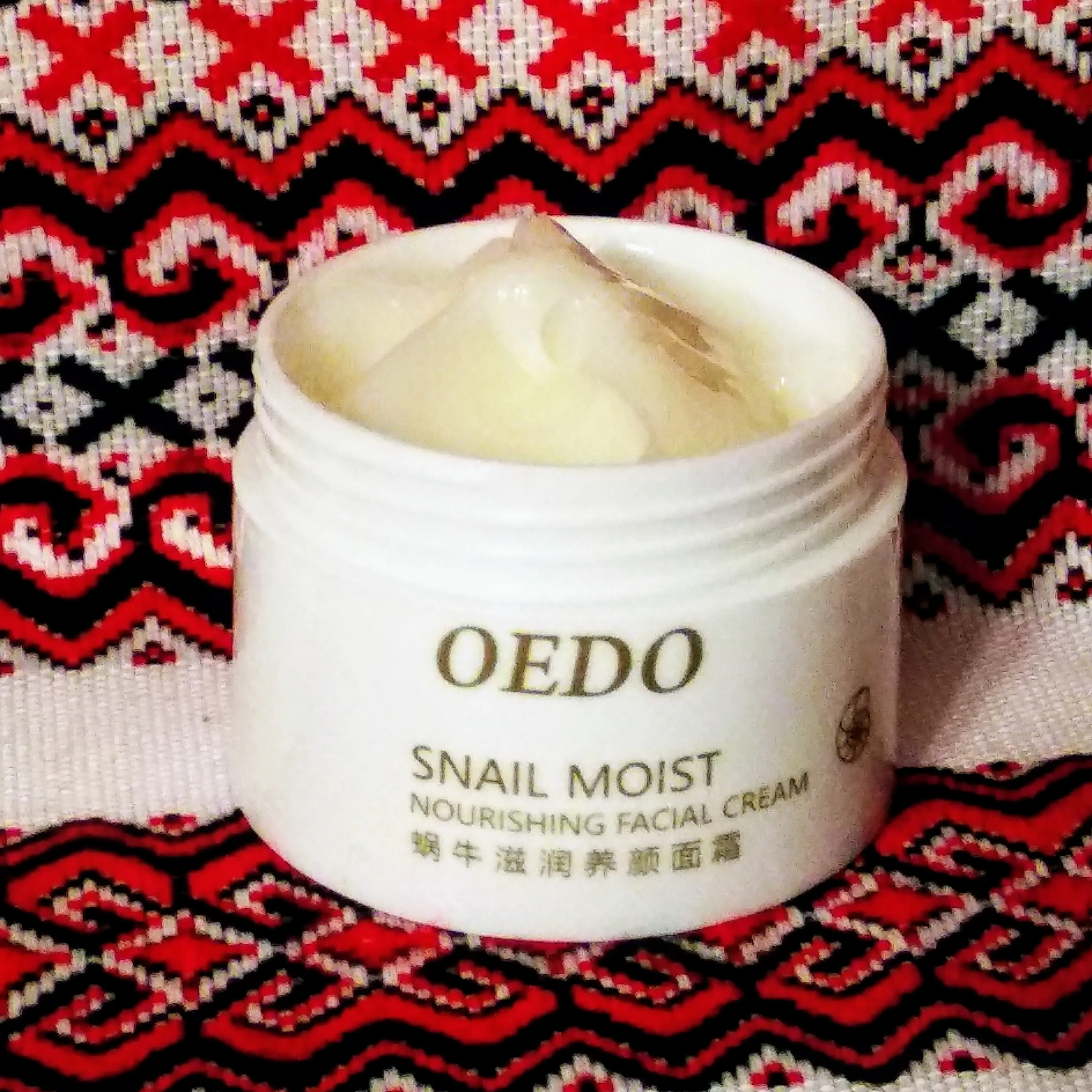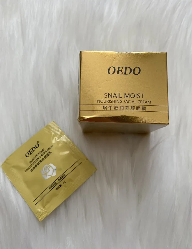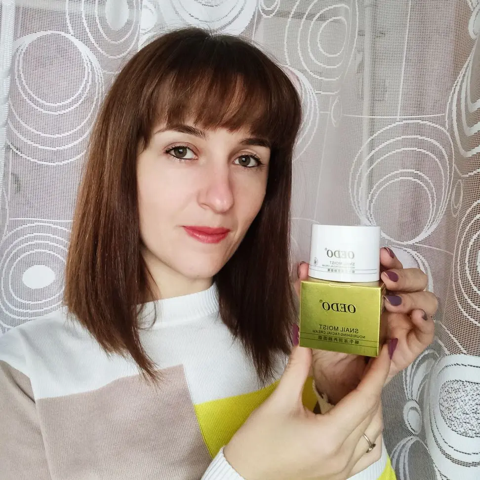 ПИТАТЕЛЬНЫЙ КРЕМ ДЛЯ ЛИЦА с экстрактом улитки от бренда #OEDO Доставка ровно месяц, трек отслеживался до получения Применение: После очищения кожи днем и ночью нанести количество продукта на лицо и мягкими массирующими движениями до впитывания. Характеристика продукта: Содержит экстракт улитки, его текстура мягкая и влажная с нежным и мягким ощущением прикосновения, легко впитывается кожей. Он может помочь улучшить тусклую кожу, пополняя ее влагой и питательными веществами, защищая сухую и грубую. Состав: вода, бутиленгликоль, глицерин, пропиленгликоль, циклометикон. Минеральное масло, полисорбат 80, сополимер акрилата натрия и акрилоилдиметилтаурата натрия, сквалан, этилгексилпальмитат, полиакриламид, изопарафин C13-14, лаурет-7, диметикон, изопропилмиристат, цетеариловый спирт, ацетилметиконилцетион, цетеариловый спирт, цетеариловый спирт, цетеарилглуэтилкетион, цетеариловый спирт Ксантановая камедь, аллантоин, феноксиэтанол, метилпарабен, пропилпарабен, ПЭГ-8, ароматизатор
