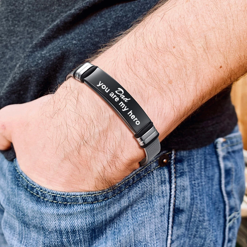 Мужской браслет из нержавеющей стали Meaeguet, индивидуальный браслет с сетчатой скользящей вставкой под заказ