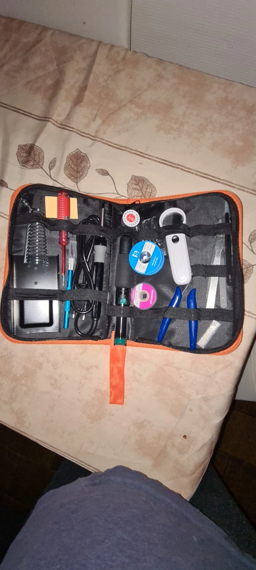 покупка шла 10 дней, отправили на следующий день после оплаты. на удивление неприятного запаха от комплекта нету, сама сумка хорошего качества и тактильно приятная. все инструменты в комплекте среднего качества. паяльник, отсос и лупа со светодиодами работают. этот комплект однозначно денег своих стоит. всем добра и здоровья!