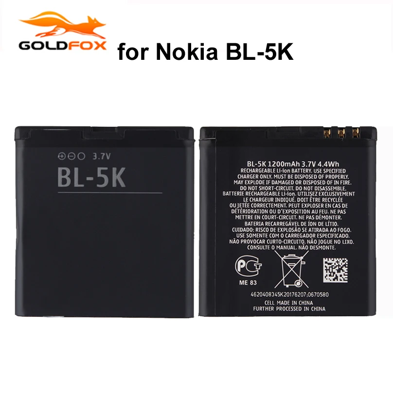 GOLDFOX бренд 1 шт. 1200 мАч BL-5K аккумулятор для телефона Nokia N85 N86 N87 8MP 701 X7 X7-00 C7 C7-00 сменные батареи