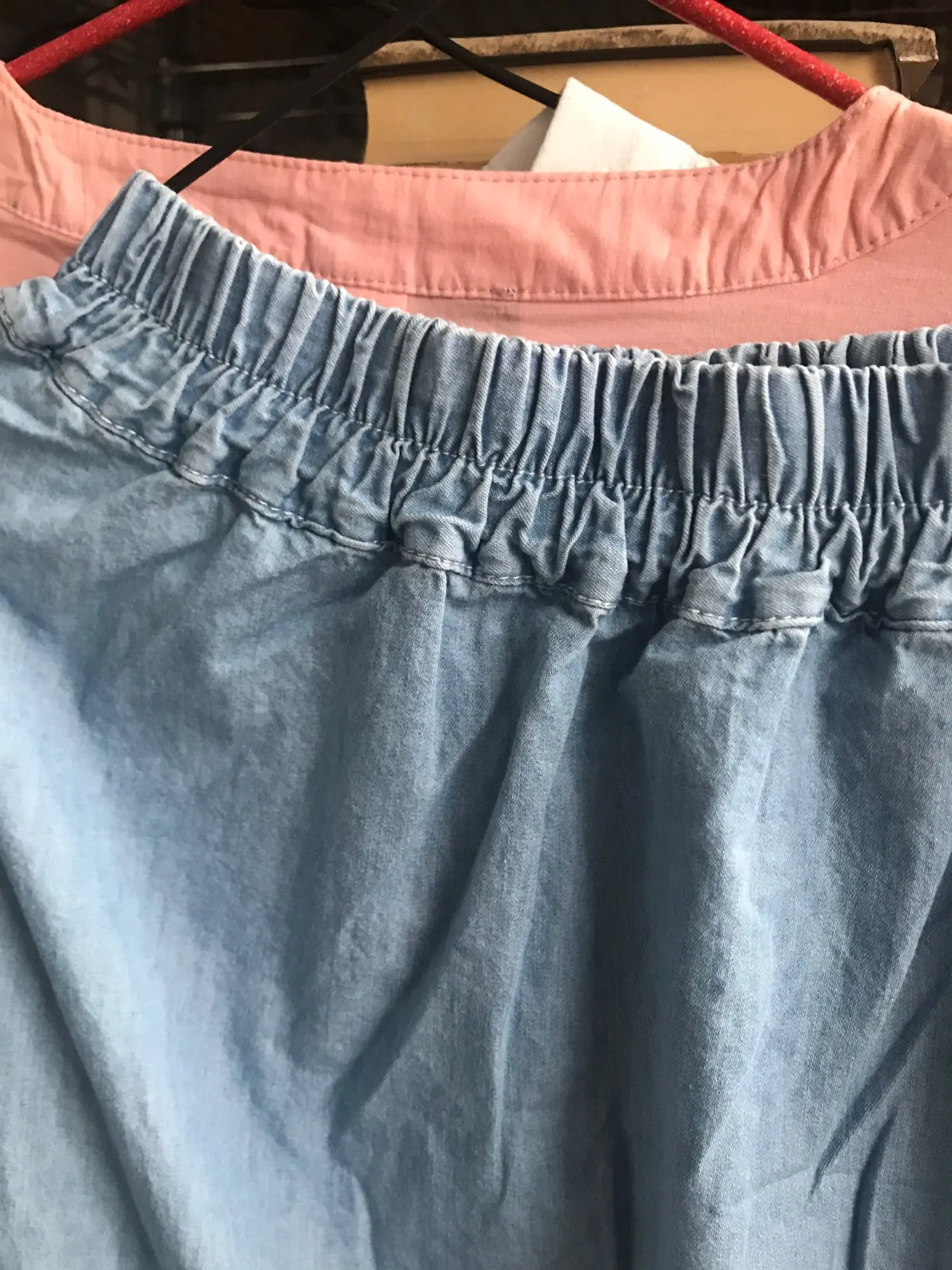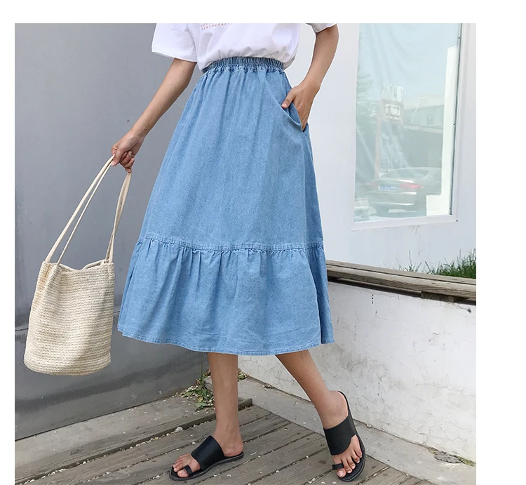 Женская джинсовая юбка до середины икры, с завышенной талией