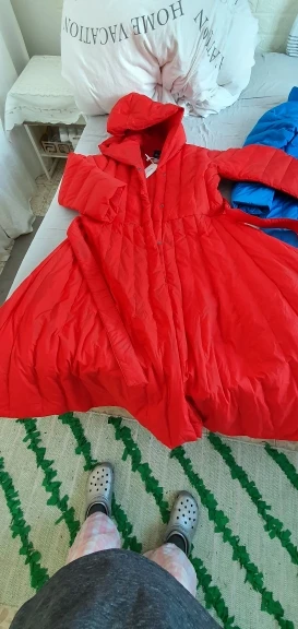 К сожалению, описание великолепное, для этого пальто, но это то, что подошло только красивого красного цвета. Очень короткий, подходит для бедер, на талии, на лямках ниже бедер, у меня 165 см, поэтому все должно быть совместимо с размерами для вечеринки. Потому что цена большая, и пальто ни на что не подходит. И повреждения