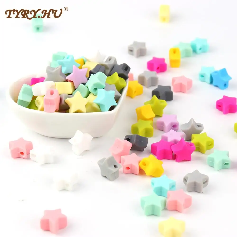 TYRY.HU, 10 шт., силиконовые прорезыватели, звезда, бусины для ожерелья, цепочка для пустышки, детский прорезыватель, не содержит Бисфенол А