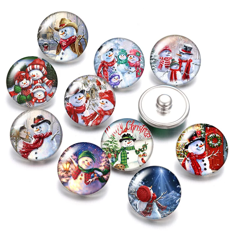 DB0582 Рождественский Снеговик Рождественский подарок 18 мм кнопки 10 шт. Смешанные Круглые фото стекло кабошон стиль для кнопки ювелирные изделия