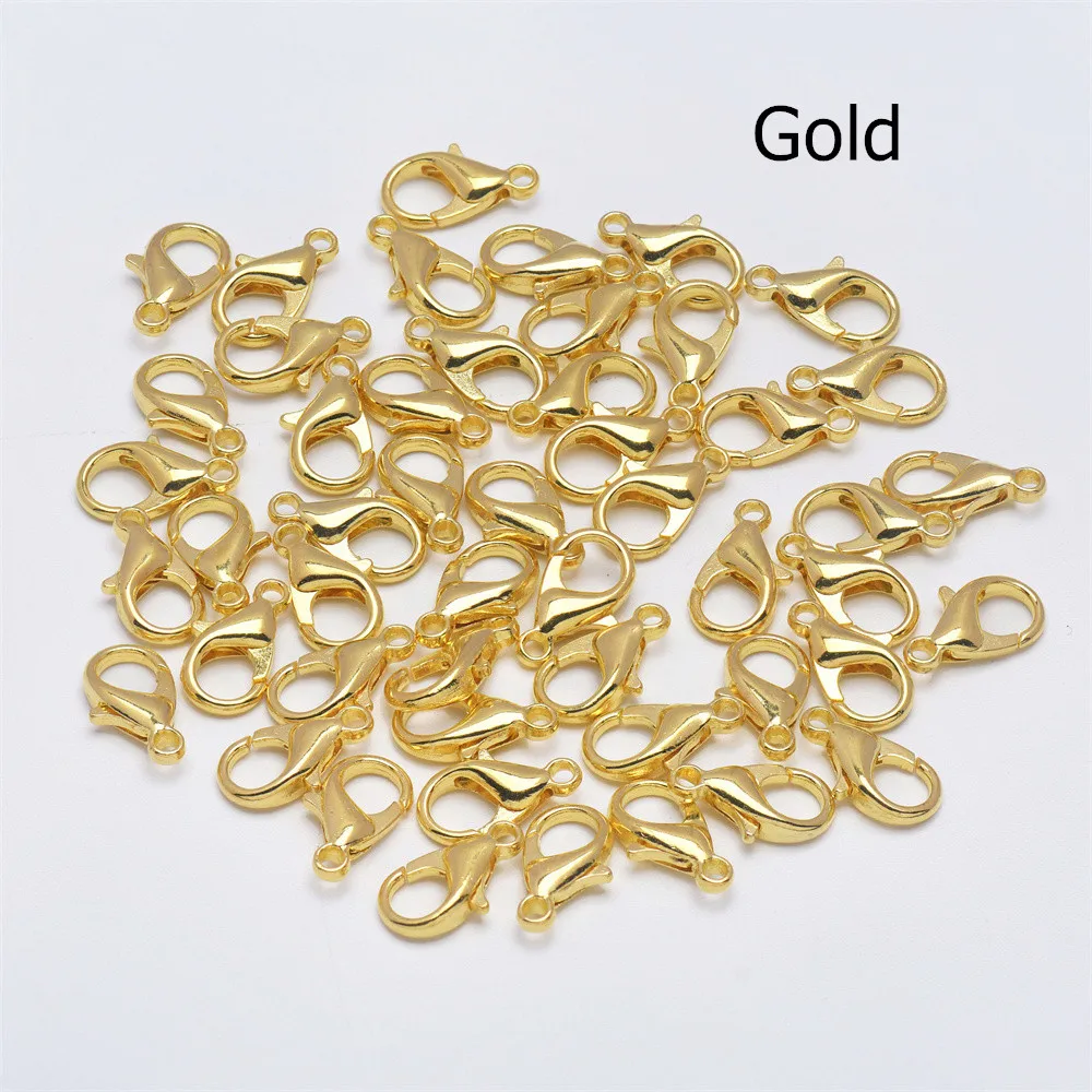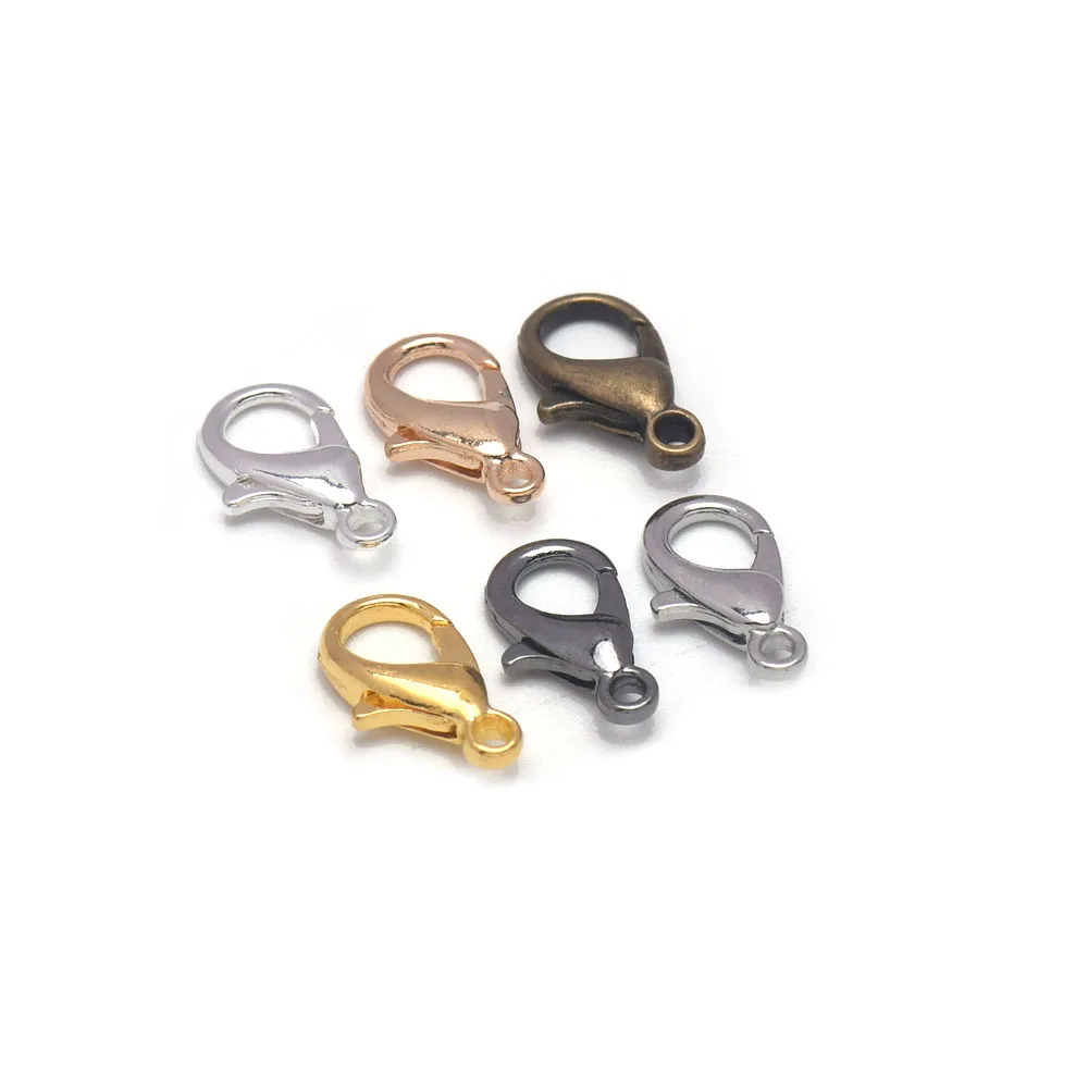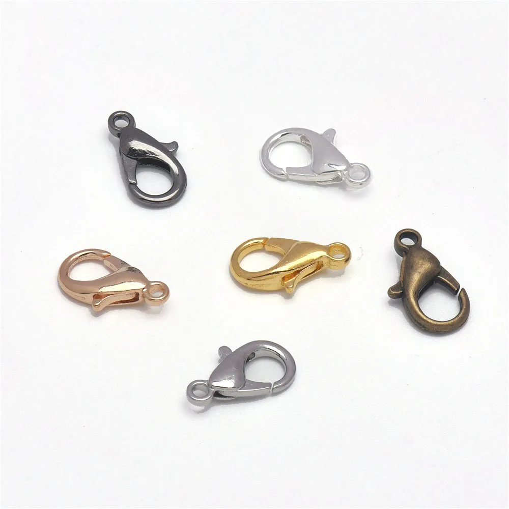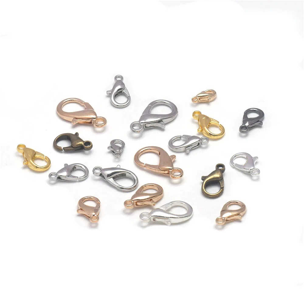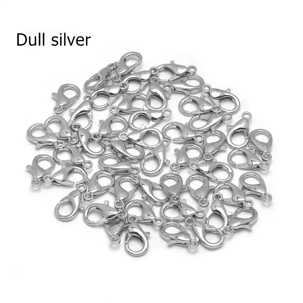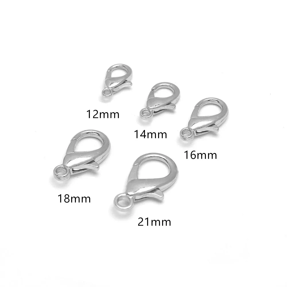 Застежки-карабины посеребренные для браслетов, ожерелий, ювелирных изделий, 50 шт., 10, 12, 14, 16, 18, 21 мм