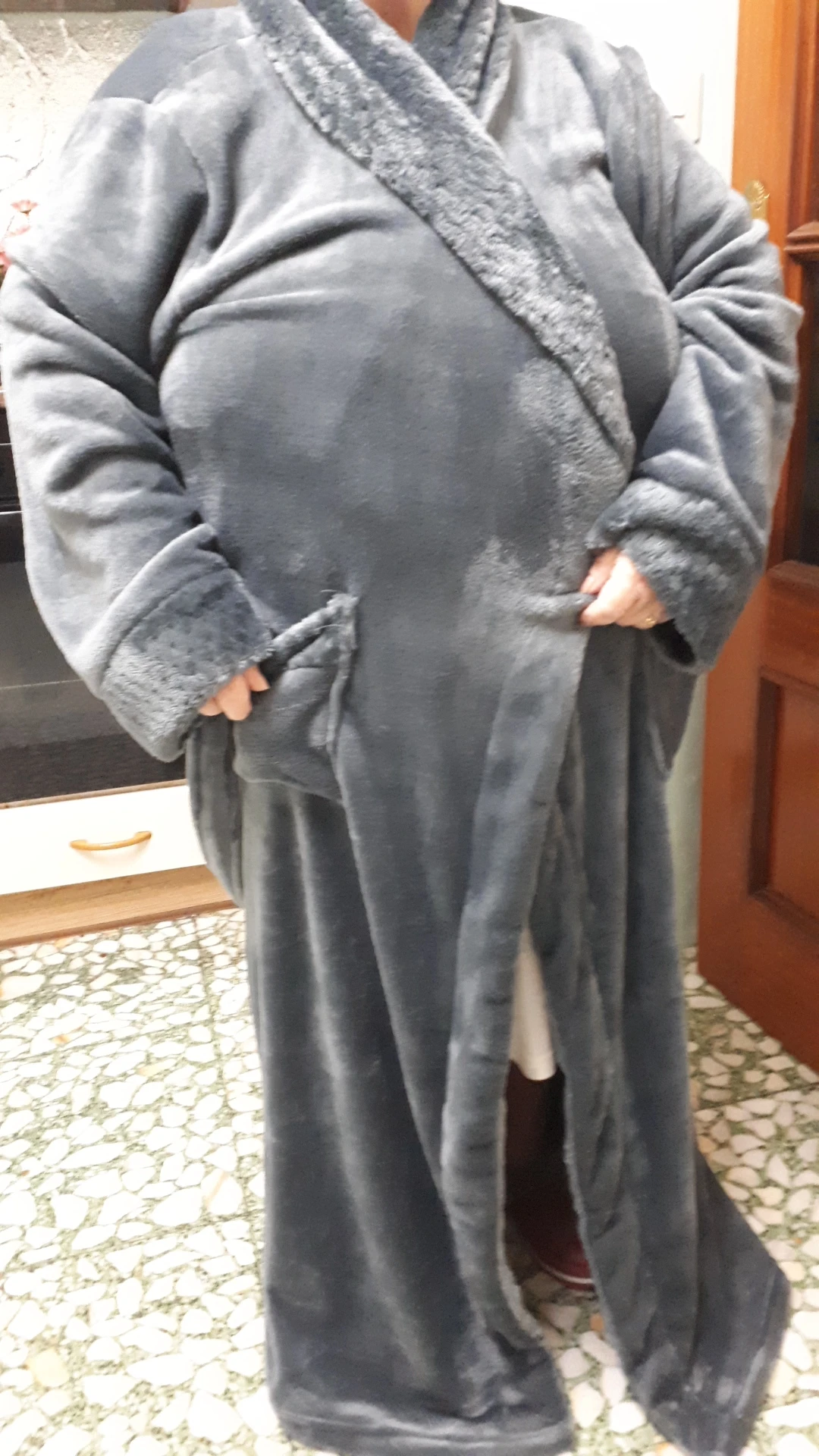 Хороший продавец, вернется снова, доставка потратила 10 дней на мой адрес, очень быстро, я очень довольна, мне мальчику срочно нужна ночная одежда, когда есть ванна, Рост: 173см, значение веса 80кг, размер XL сидит свободно, купленный цвет темно-синий такой приятный, качественный, длинный до щиколотки, широкий размер, удобно носить, отличный халат я счастлива, ткань теплая фланель, которая здорова и приятна для кожи.