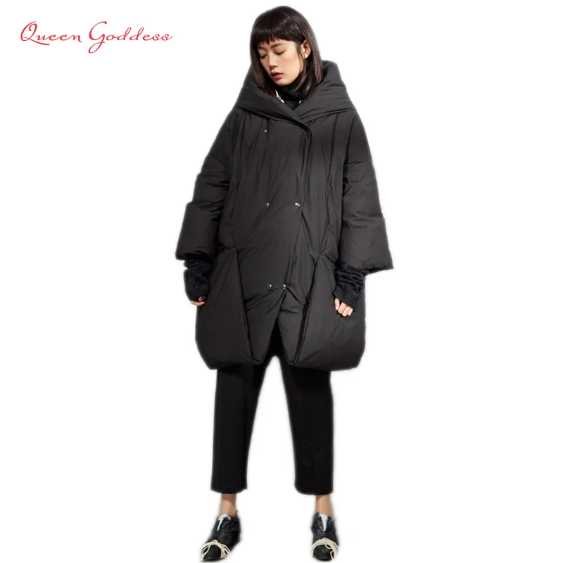 Свободная уличная крутая стильная утолщенная и теплая длинная пухов...