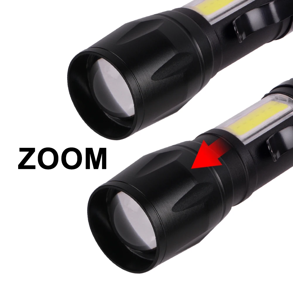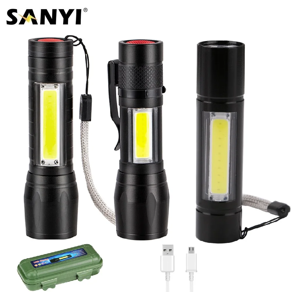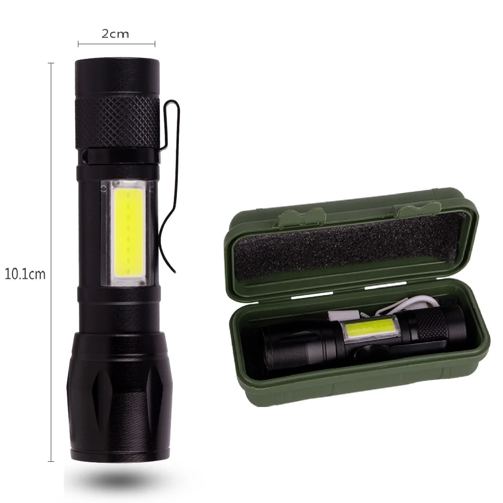 XP-G Q5 COB светодиодный фонарик USB Перезаряжаемые фонарь и возможностью регулирования интенсивности и дальности свечения лампы Водонепроницаемый тактический фонарь светодиодный лампочки построена в Батарея коробка