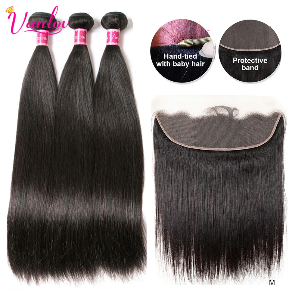 Прямые пряди волос с фронтальным малазийским плетением пряди с фронтальным закрытием Remy человеческие волосы в пучке с закрытием