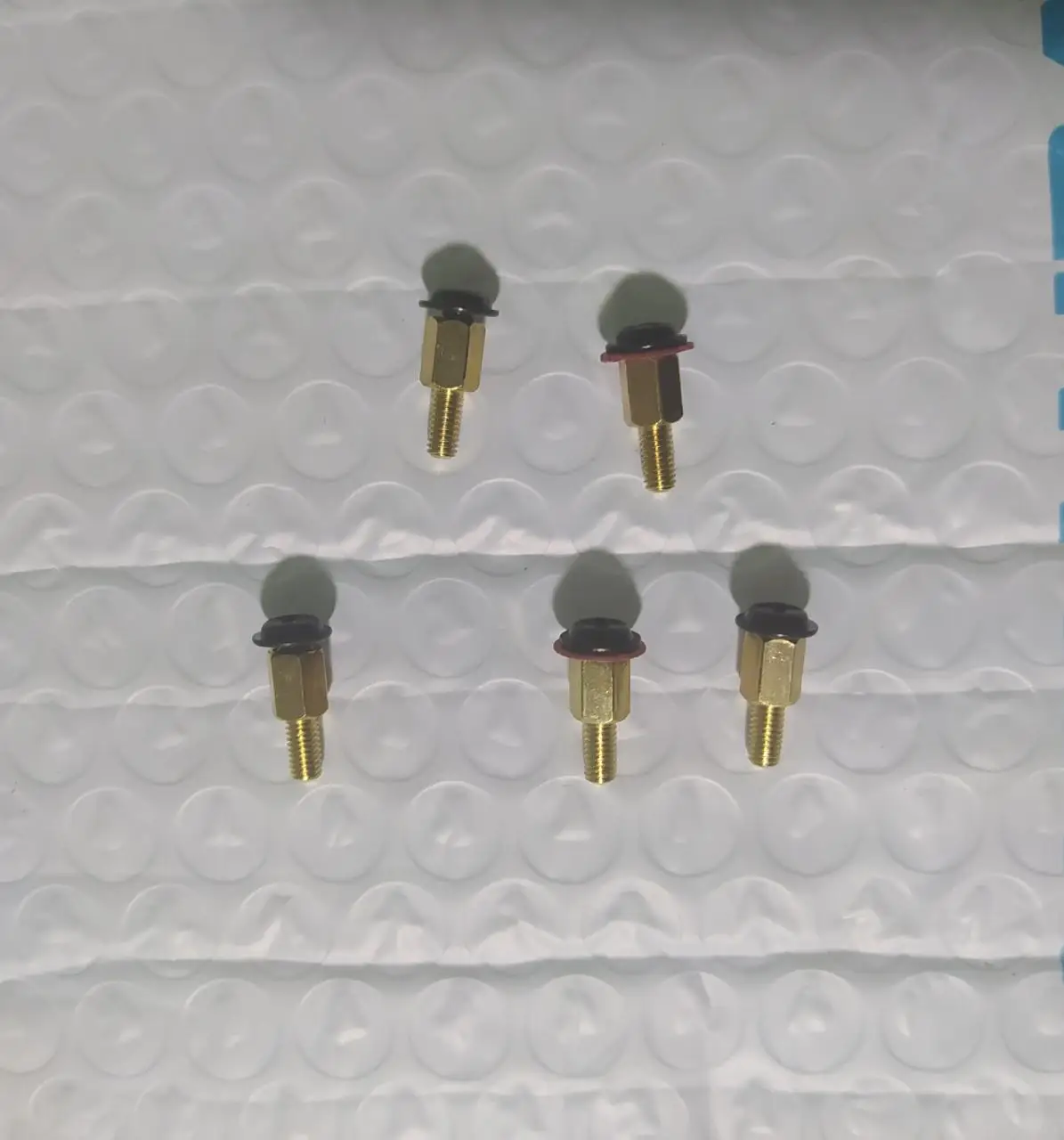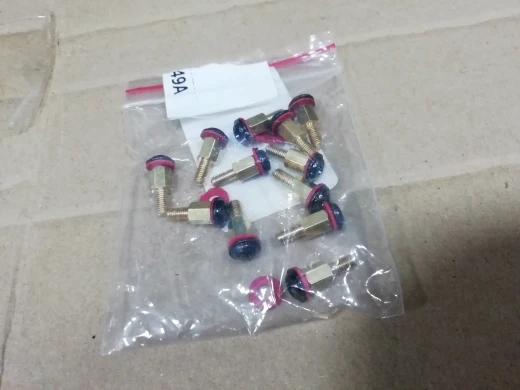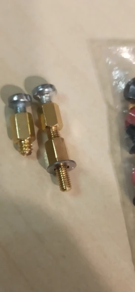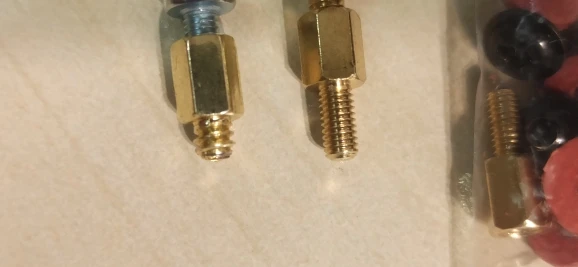 справа из купленного комплекта, с обычной резьбой под гайку м 3. слева из стандартного набора шли с корпусом. Резьбы на стволе разные, брал специально для установки под новые не достающие отверстия для матплаты , просверлинные мною . Немного короче от стандартных поэтому подкладываем шайбу.