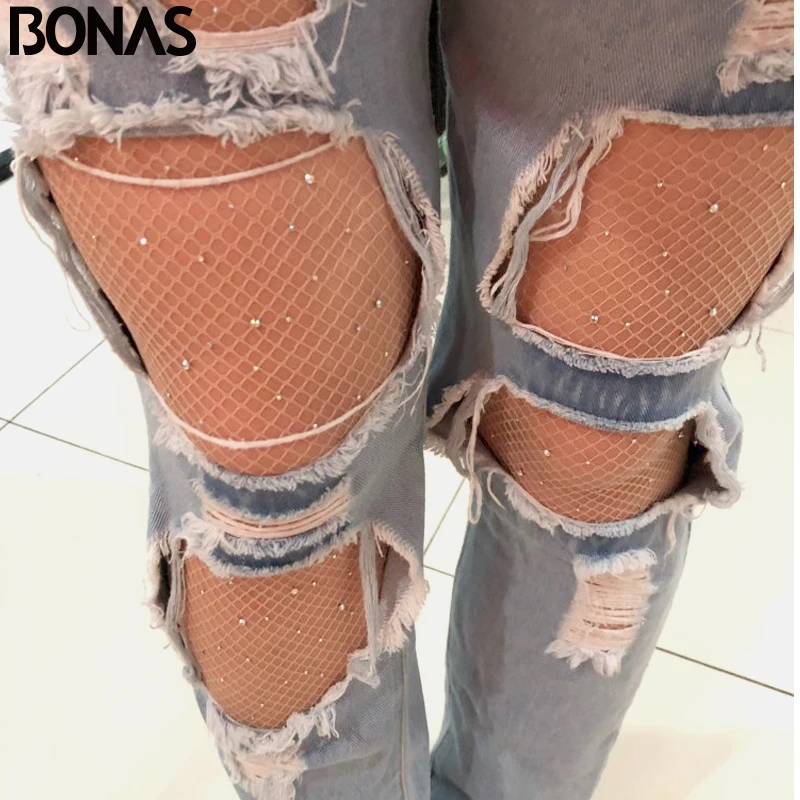 BONAS, хит продаж, женские ажурные колготки с открытым шаговым швом, сексуальные сетчатые нейлоновые колготки со стразами, женские черные дышащие ажурные чулки