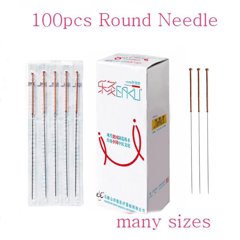 100 шт. одноразовые Иглоукалывание иглы Медной Ручкой сертификатом от сертификационной Круглый иглы не вызывает болезненных ощущений массаж sharp иглы для похудения тела