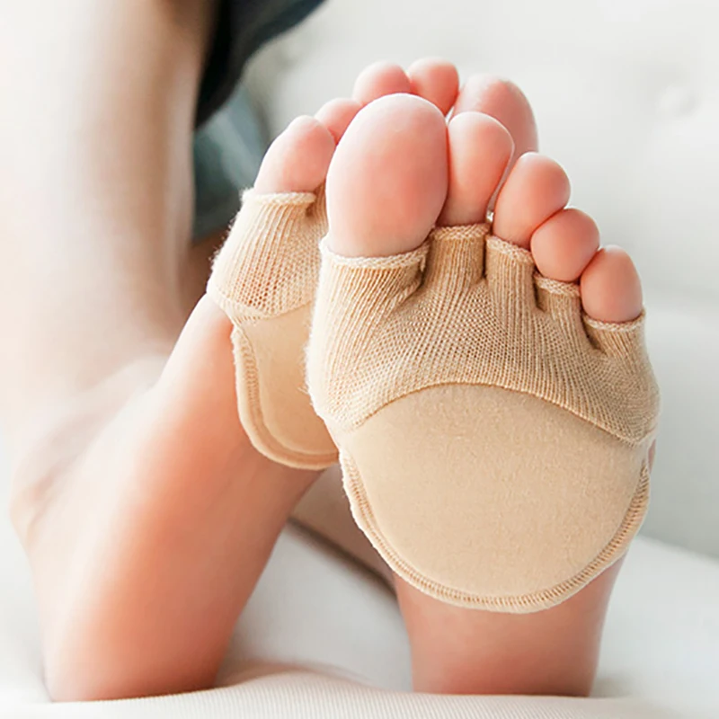 Женские носки с силиконовой противоскользящей подкладкой, с открытым носком, хлопковые носки с невидимой подушечкой для передней части стопы