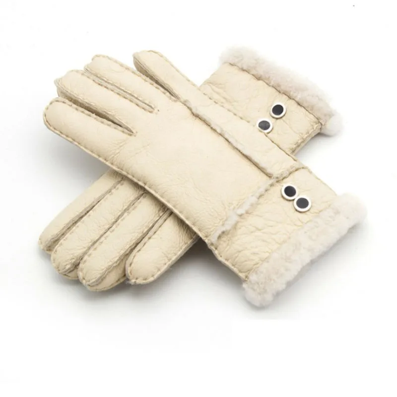 Брендовые новые женские перчатки из натуральной кожи, женские уличные зимние супер теплые варежки, женские перчатки из натуральной овчины, однотонные шерстяные перчатки