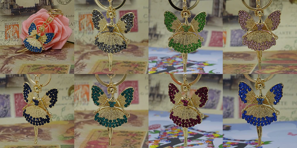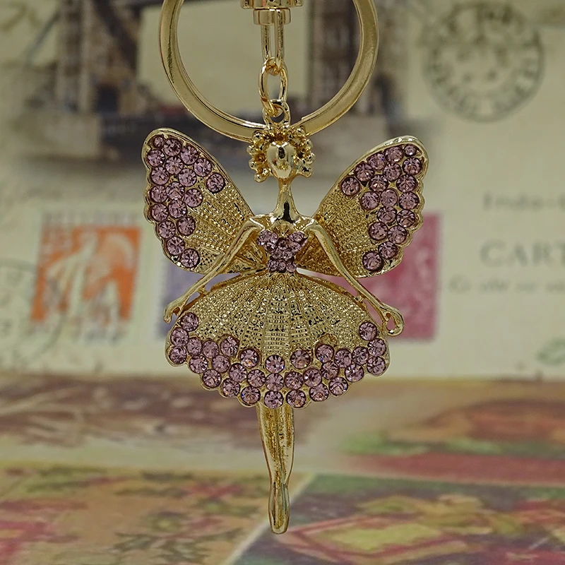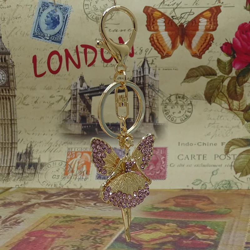 Креативный ювелирный кулон кольцо для ключей из сплава Стразы Бабочка Фея кольцо для ключей с сумочкой кулон автомобильный брелок женский ювелирный подарок