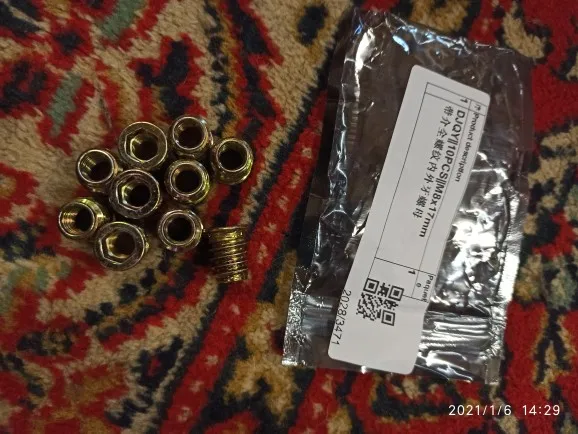 Гайки получил. Очень понравились. Прочные, надежные. Использую для крепления деревянных ножек стола. Спасибо продавцу!