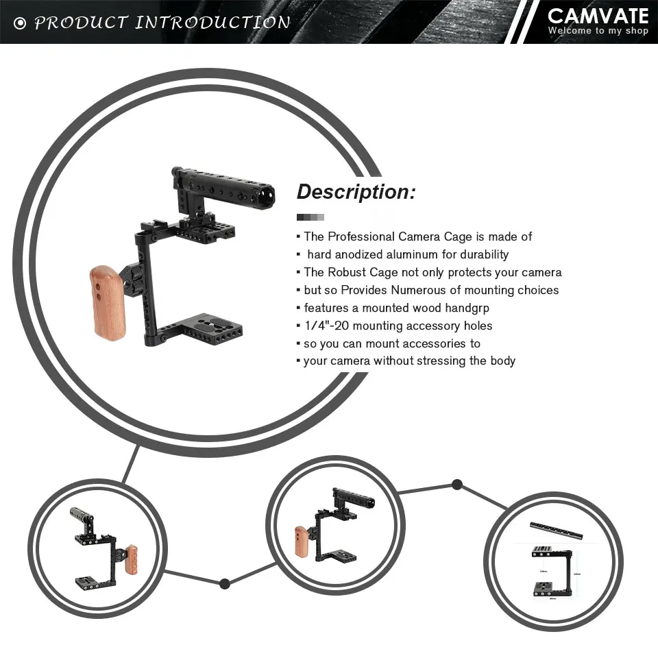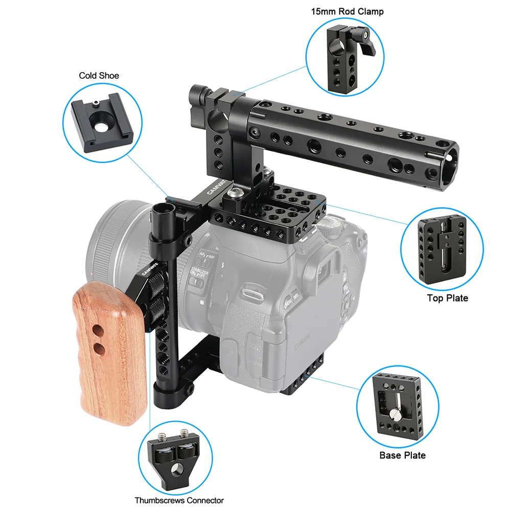 Прочная клетка не только защищает вашу камеру, но и обеспечивает множество вариантов крепления, оснащен монтируемым деревянным наконечником и крепежными отверстиями 1/4 "-20, поэтому вы можете устанавливать аксессуары на камеру, не подчёркивая корпус.