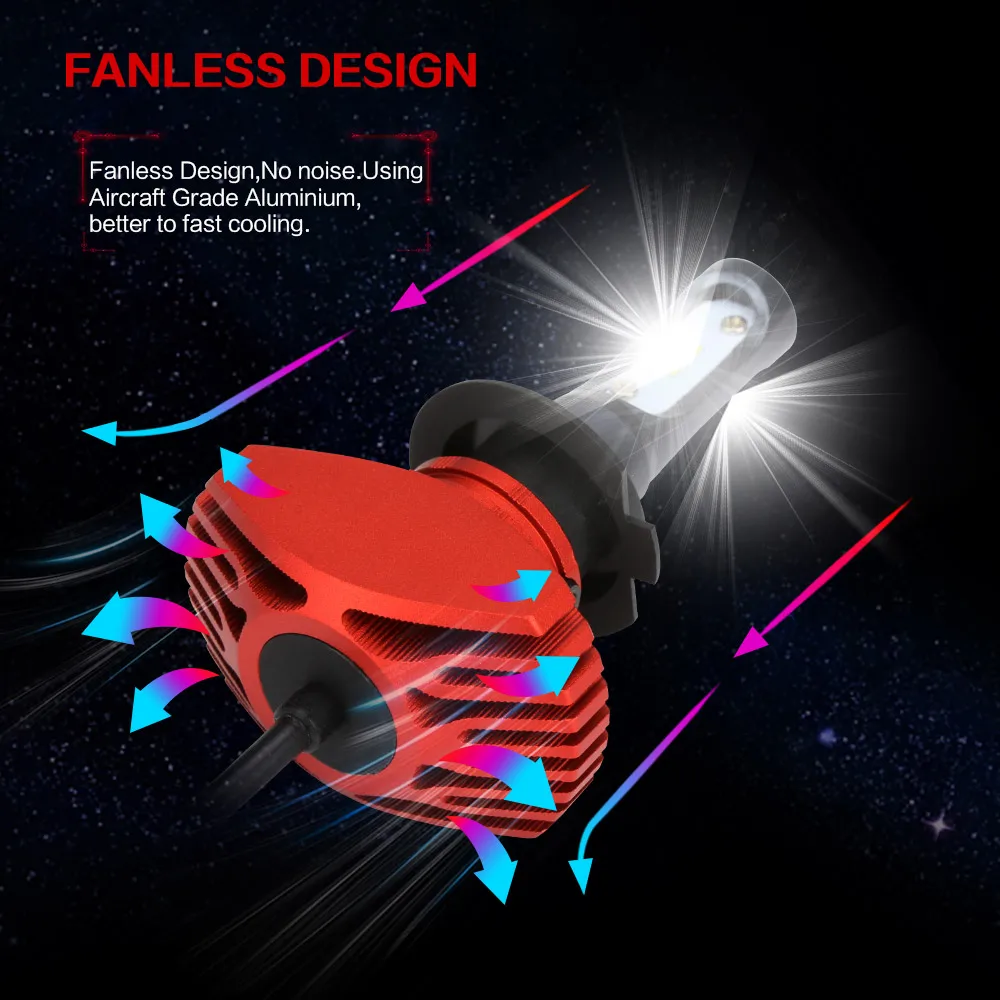 Светодиодные фары Zdatt H7 s H1 9005 HB3 9006 HB4, автомобисветильник фары без вентилятора, 6000 лм, 80 Вт, 12 В, светодиодные лампы для автомобильных фар K, лампы без шума