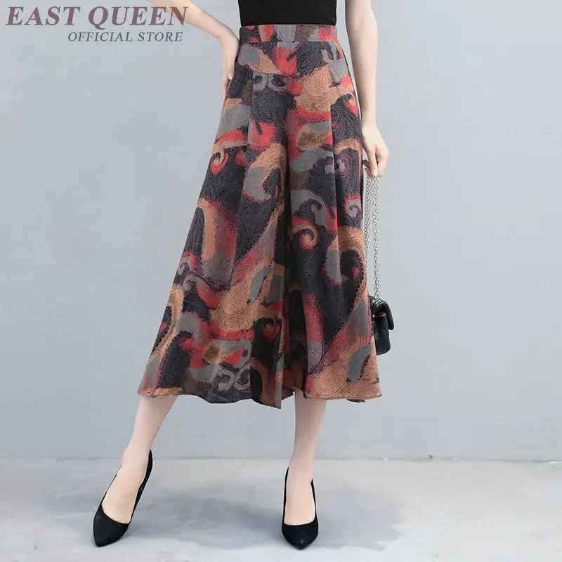 Женские льняные брюки палаццо, Свободные мешковатые брюки с широкими штанинами в китайском стиле, FF1175