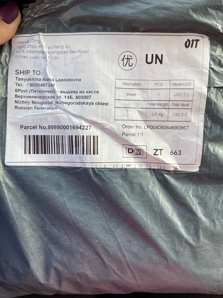 Обманщики! Заказала женские кеды, а пришла МУЖСКАЯ РУБАШКА! Открыла спор, продавец попросил взвесить посылку, не поленилась пошла в магаз взвесить. Интересная вещь: под наклейкой где указана мои ФИО и адрес, обнаружилась другая наклейка!!! Где другой вес товара, и другая страна покупателя!!! Продавец денег так и не вернул, нахрена мне теперь мужская рубашка я не знаю. Но точно у них больше ничего не куплю.