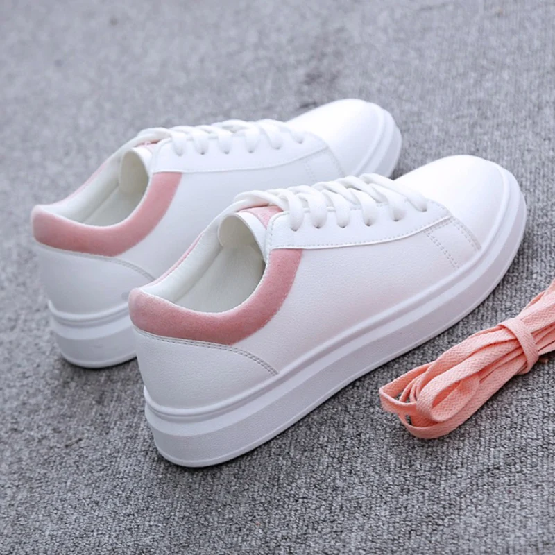 Кеды женские из ПУ кожи, дышащие кроссовки на платформе, Повседневная Мягкая модная обувь, белые, осень 2018