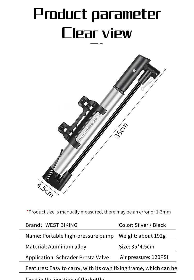 Насос для шин велосипедный, портативный, WEST BIKING фунтов на квадратный дюйм