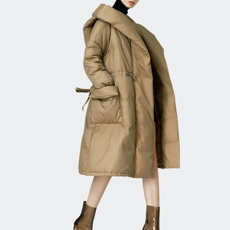 Свободная уличная крутая стильная утолщенная и теплая длинная пуховая куртка, Женская парка с капюшоном, женская верхняя одежда с регулируемой талией, качественная