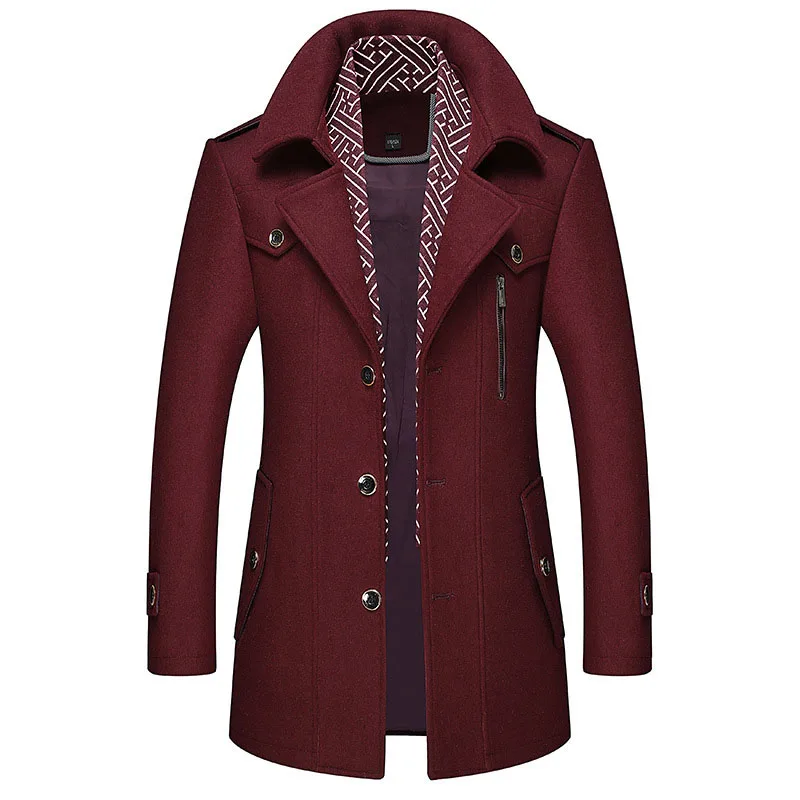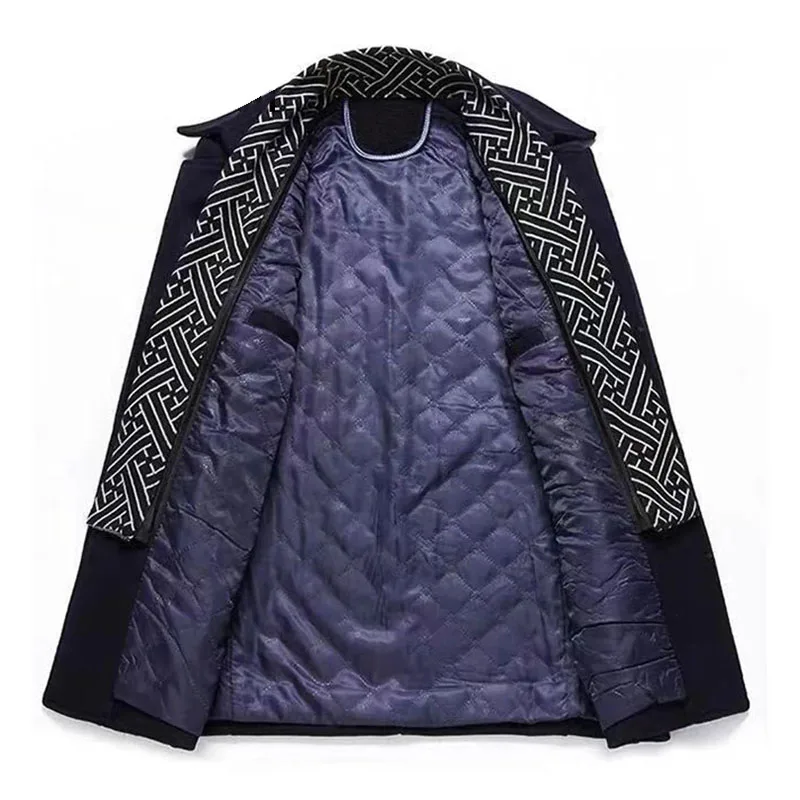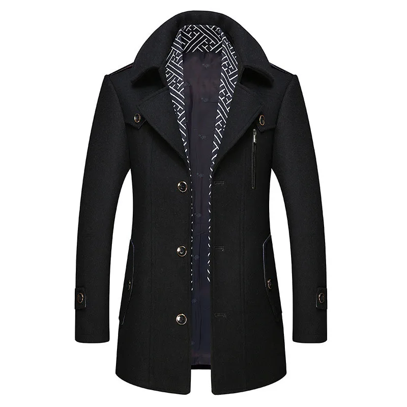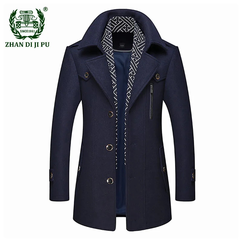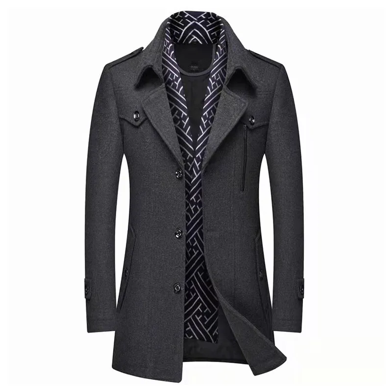 Мужская теплая куртка средней длины, повседневная плотная куртка из смешанной шерсти, с воротником-шарфом, для осени и зимы