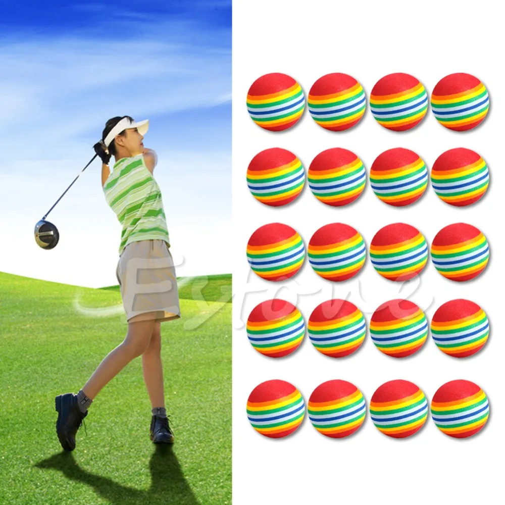 20 штук упак. радужные полосы пены Губка Мячи для гольфа качели тренировочные средства