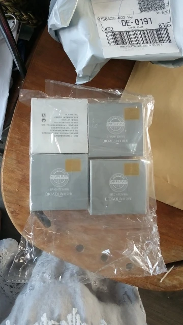 привез курьер. даты норм. пилинг работает мягко, скатал старую кожу, осветлил. кожа бархатная. маска не плёночная, а гелеобразная, на лице выглядит прозрачной, не засыхает, впитывается, смывается водой. осветлила, увлажнила, чуть разгладила морщины, матовый эффект. но! я надавила пальцем на лоб- и остался отпечаток! именно папиллярный рисунок на лбу!! на фото этого не видно. отпечаток продержался 10 минут! это пугает