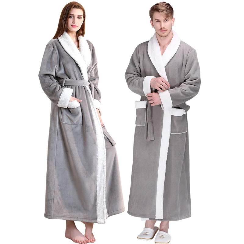 Мужской зимний очень длинный толстый теплый фланелевый флисовый банный халат, роскошное кимоно для мужчин и женщин, соблазнительные меховые халаты, мужской Халат