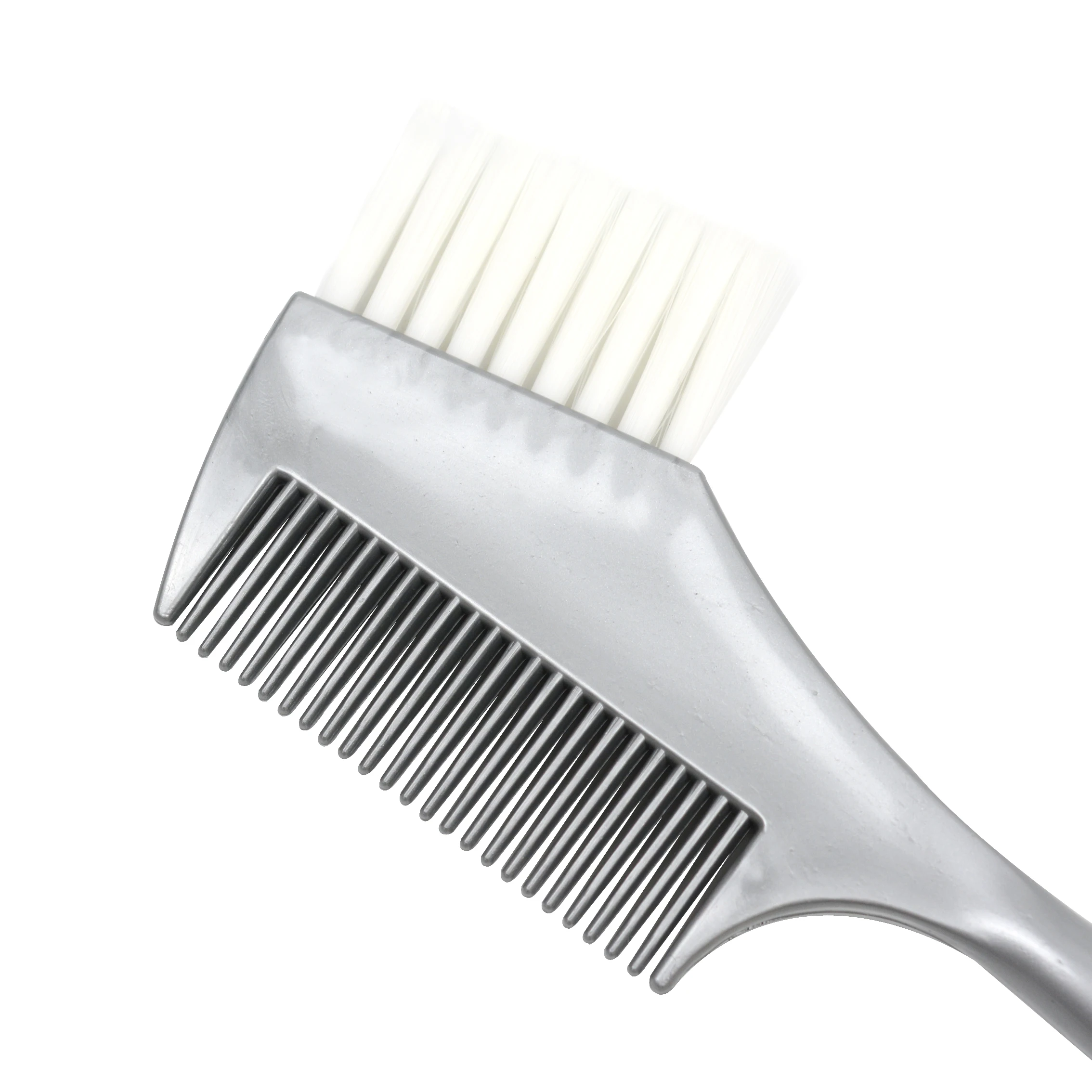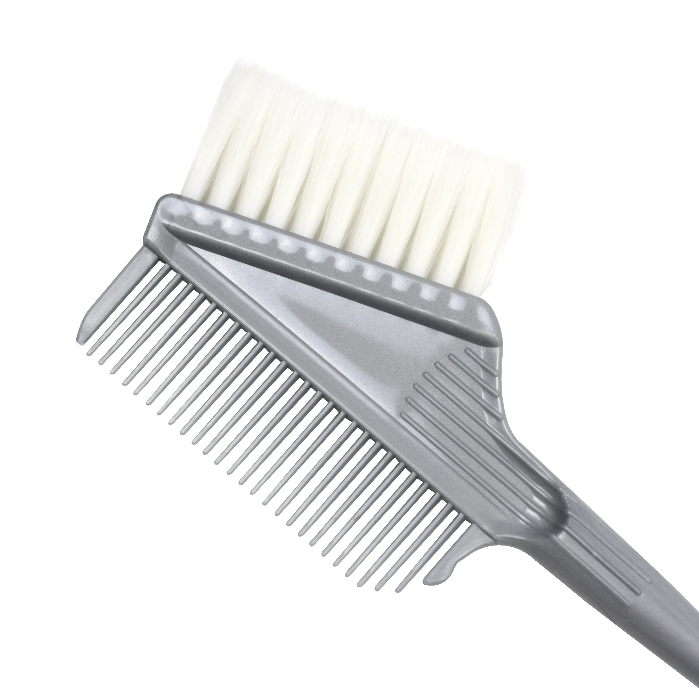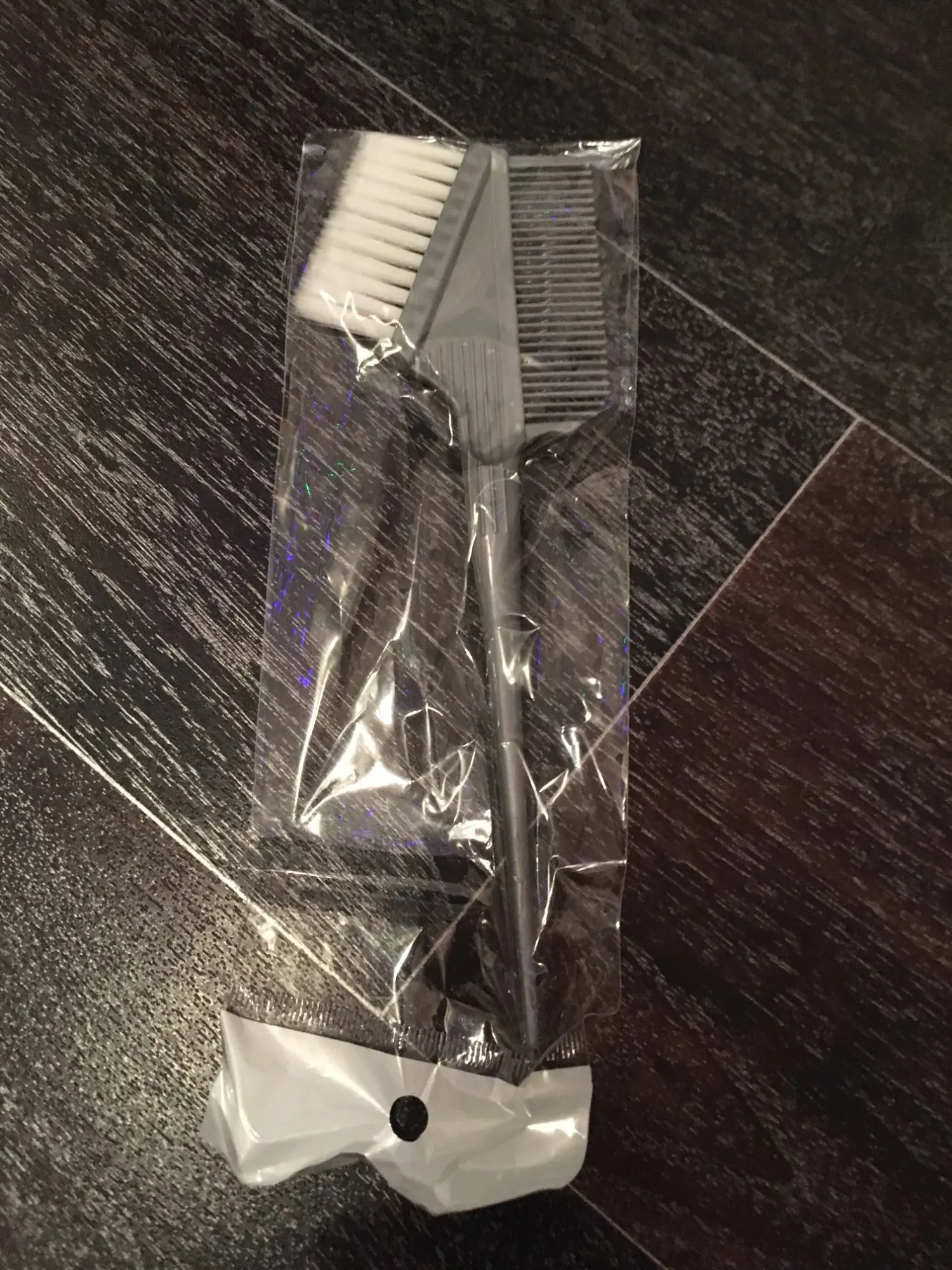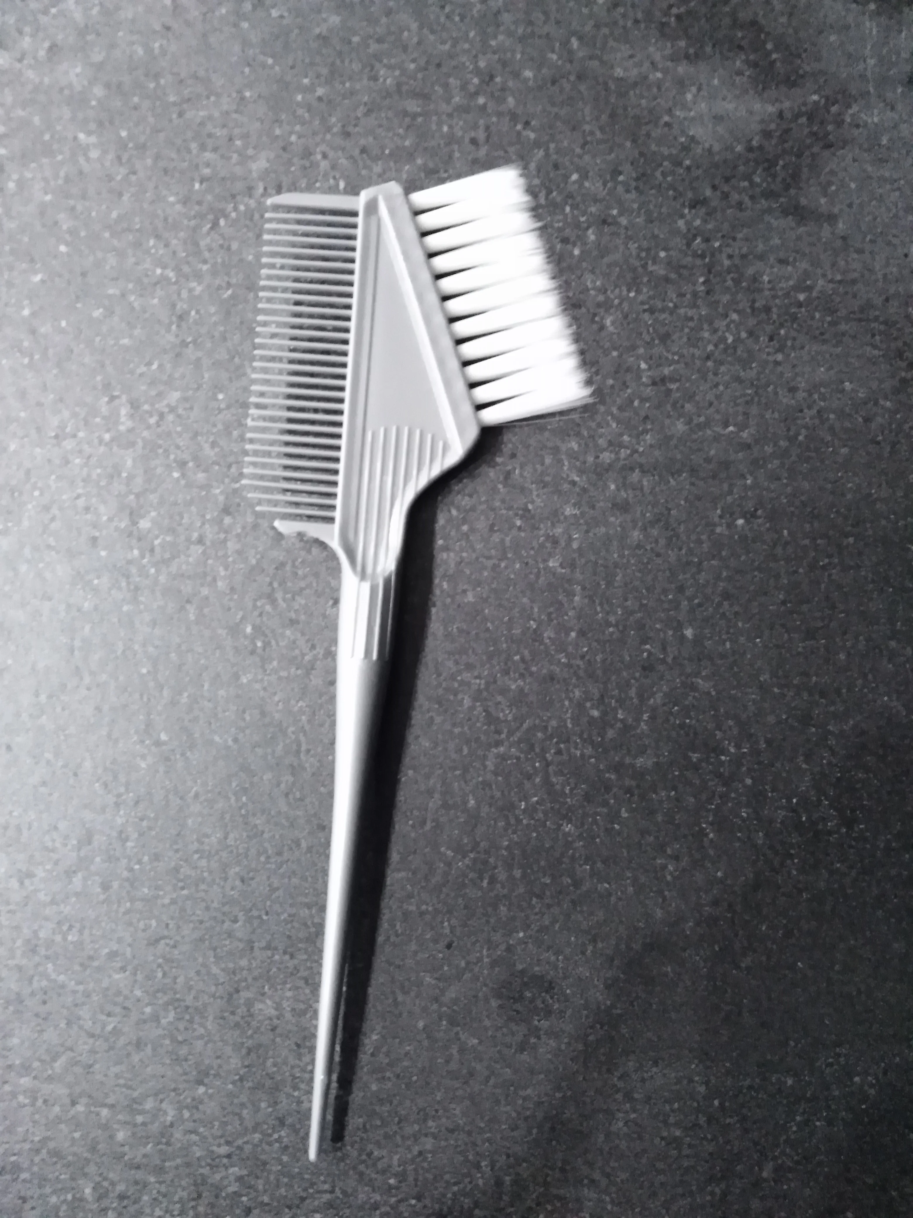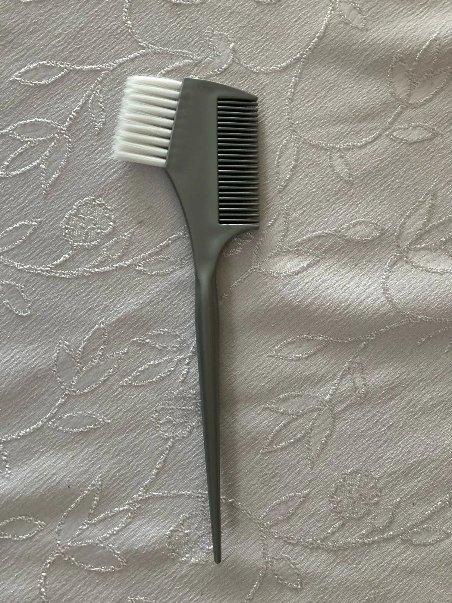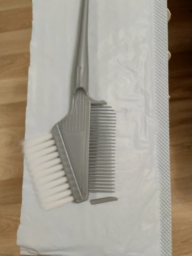 Расческа с кисточкой для растяжет (окрашиваний). Товар хороший. Качество соответствует описанию. Кисточка немного мягче профессиональных, но обрезана очень хорошо, то что надо для тушевки. Сама расчесочка имеет мягкие зубчики, но тем не менее хорошо прочесывает прядь. Ручка толстенькая, риленая и очень удобная для моей руки. Хвостик ручки при разделении прядей кожу головы не царапает. Отличный товар. Рекомендую.