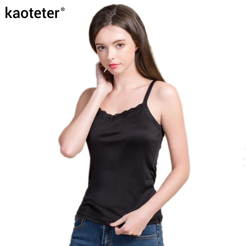 Майка из 100% чистого шелка, женская верхняя одежда, пышная кружевная шелковая рубашка без рукавов на лето