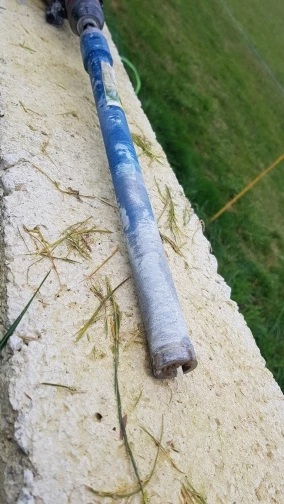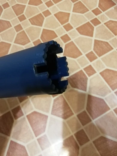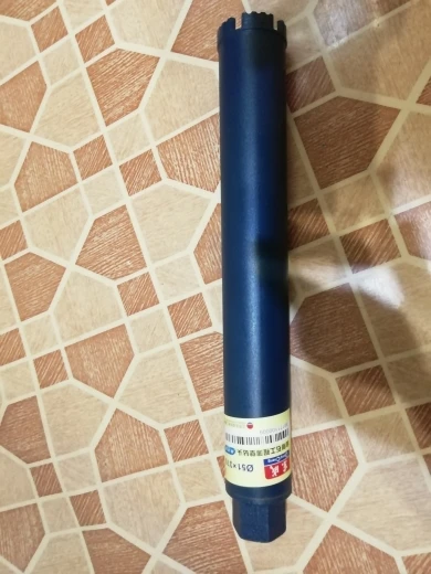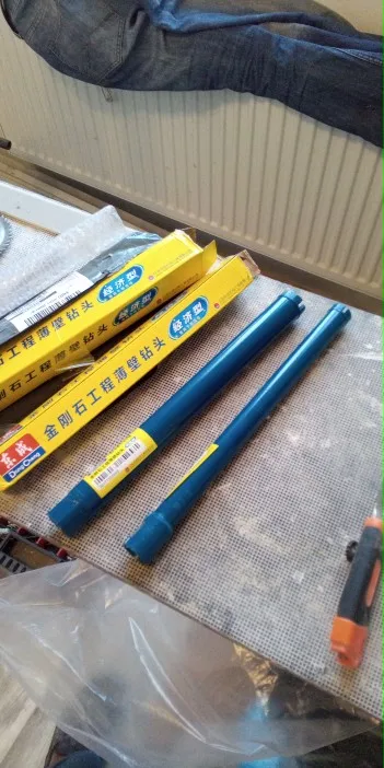 Получили. Обязанность использовать наконечник. Маленький заостренный инструмент, у меня были проблемы с бурением бетона 20 см армированного... Это занимает много силы и терпения, чтобы нанести давление на инструмент 30 мин для отверстия... Подумайте о смазке водой. Все еще кажется качественным чепчиком.