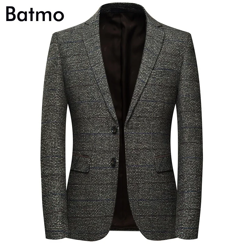 Мужской Блейзер Batmo, серый клетчатый Повседневный хлопковый Блейзер, 8163