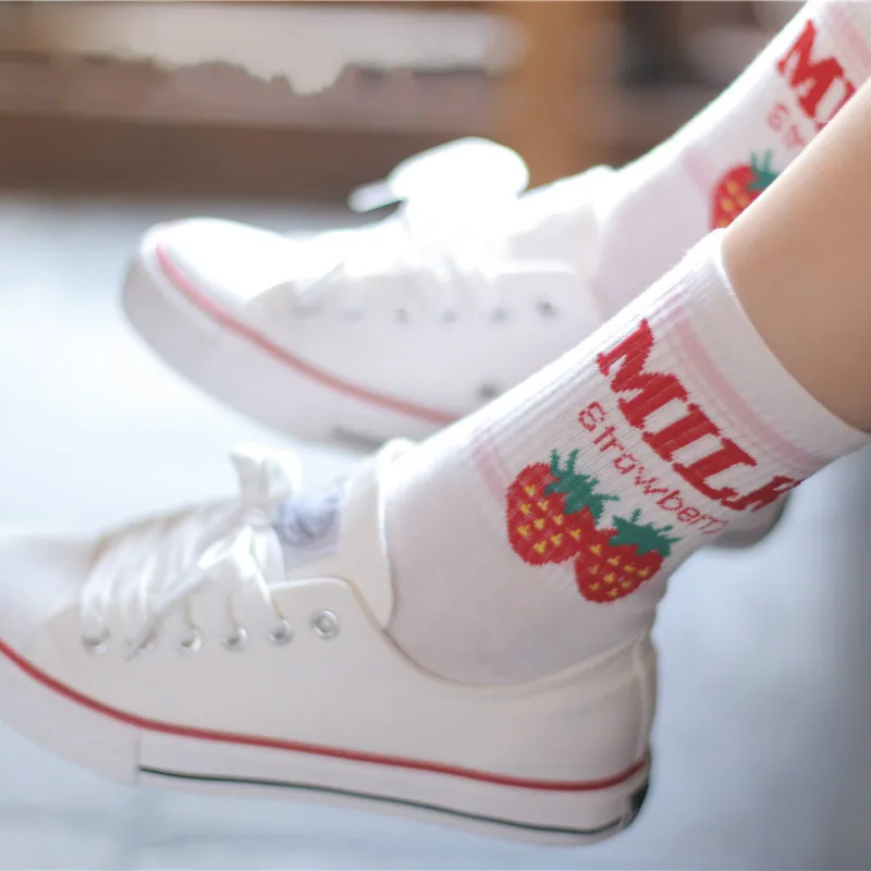 Женские короткие носки из чесаного хлопка, с принтом клубники, молока, торта