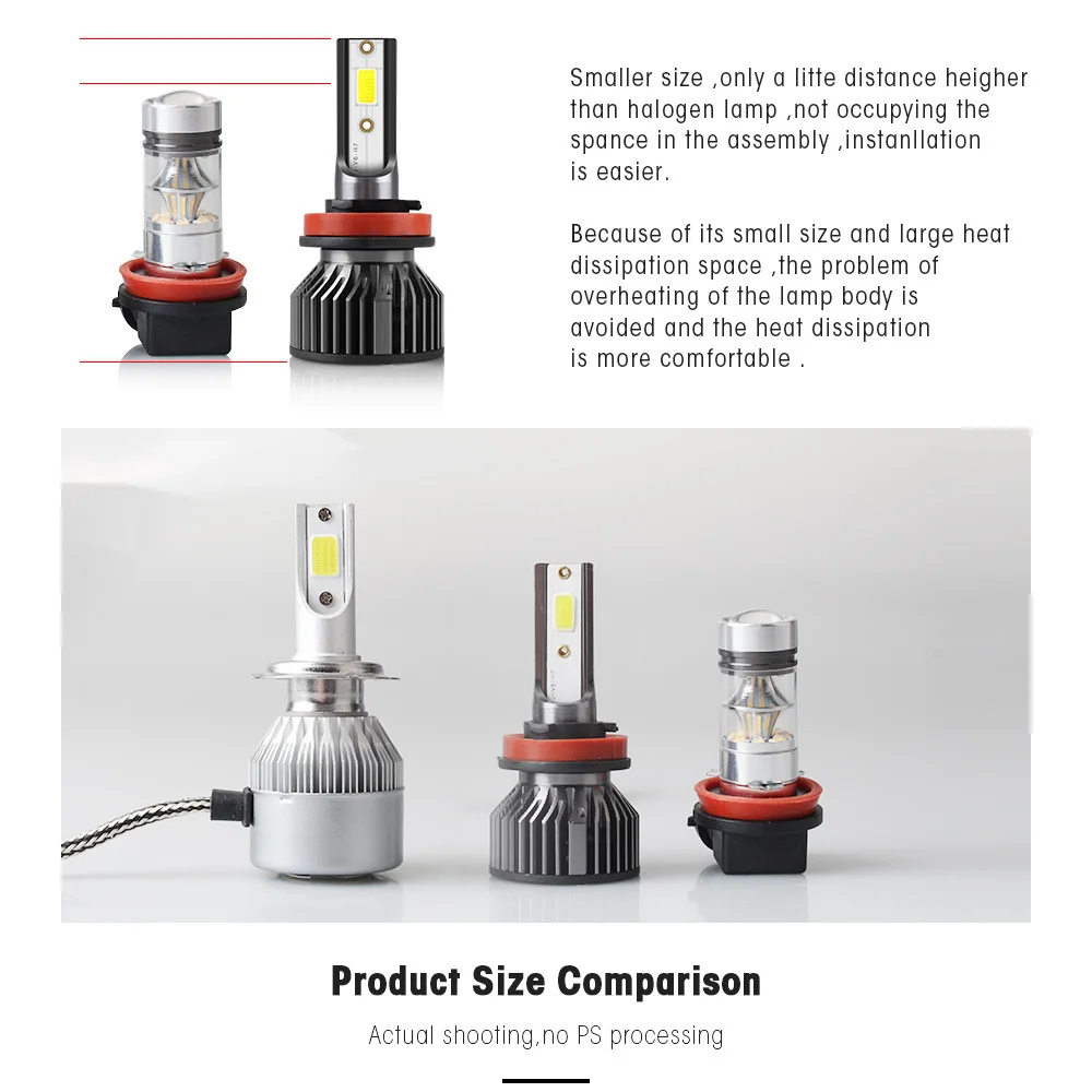 Автомобильные светодиодные лампы PAMPSEE, лампы для передних фар 6000 лм H11 H1 H3 H4 H7 76 Вт 9005 K 9006 HB3 HB4 H8 H9, Автомобильные противотуманные фары 12 В 24 в LED S6