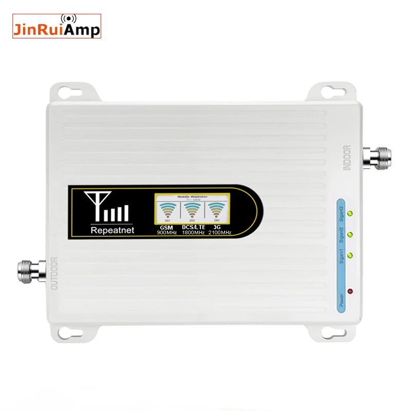 Усилитель мобильного сигнала Gain, трехдиапазонный репитер 2G 3G 4G для GSM 900 МГц + DCS LTE 1800 МГц + WCDMA UMTS 2100 МГц с ЖК-дисплеем