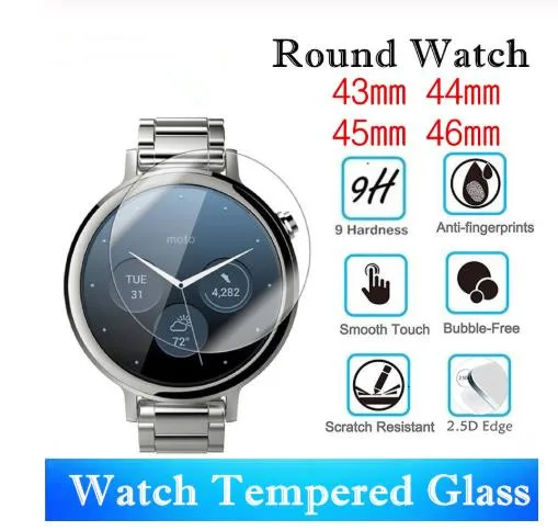 Закаленное стекло для умных часов, Универсальные круглые, диаметр 43 мм, 44 мм, 45 мм, 46 мм, Защитная пленка для экрана, 100 шт.